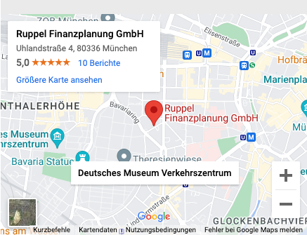 Die Firma Ruppel Finanzplanung GmbH steht Ihnen in und um München bei allen Fragen zu den Themen Private Krankenversicherung, Vermögens- und Geldanlage, Altersvorsorge, Immobilienfinanzierung, Berufsunfähigkeit und Versicherung zur Verfügung. Gerne beraten wir Sie objektiv und unabhängig. Dies tun wir bereits seit 12 Jahren erfolgreich für unsere Kunden. Sie wohnen im Raum München und wollten schon immer einmal wissen, wie eine zeitgemäße und sinnvolle Beratung aussehen muss? Rufen Sie uns an oder nutzen Sie unser praktisches Kontaktformular, wir beraten Sie gerne!
